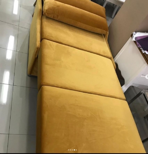Një kolltuk të verdh që mund të shndërrohet në krevat